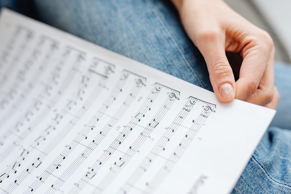 Notes themselves are represented by their position on the staff – higher notes are placed higher on the staff․ Note duration (whole‚ half‚ quarter‚ eighth) determines how long each note is held․ Rests signify silence․ Sharps (#) raise a note’s pitch by a half step‚ while flats (♭) lower it․ Natural signs (♮) cancel sharps or flats․