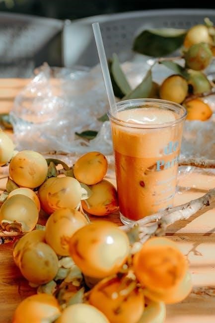 Optimize your machine for various citrus fruits like oranges‚ grapefruits‚ lemons‚ and limes. Adjust settings based on fruit size and acidity for consistent juice quality. Larger fruits may require pre-cutting‚ while smaller ones can be juiced whole. Experiment with combinations to create unique flavors. Ensure proper fruit preparation‚ such as peeling or seed removal‚ to enhance extraction efficiency and minimize pulp or bitterness in your juice.